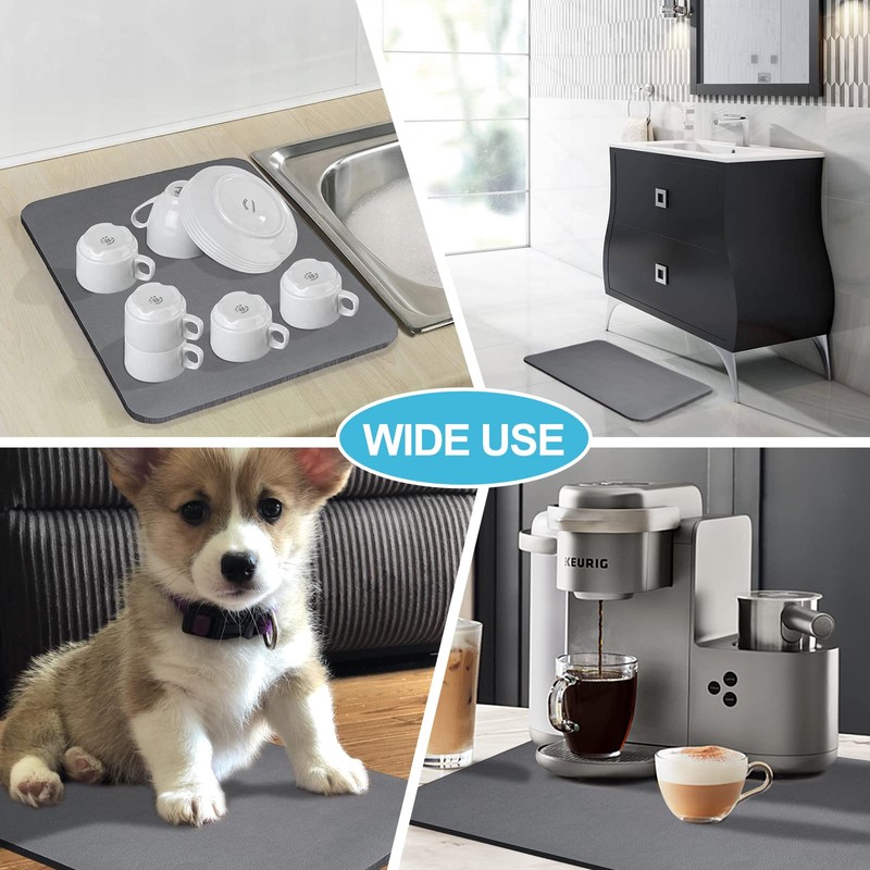 This kitchen drying mat can be placed anywhere you want to absorb water, such as kitchen countertops, shelves, under the sink, bathroom countertops, dining table, also great for pets as a placemat or bed.