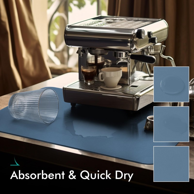 - Anti-leak & Anti-slip rubber backing: The natural rubber bottom of the coffee machine pad has a good anti-slip effect. Put the coffee maker on the rug, and the anti-slip bottom will be absorbed on the table to prevent it from moving. The waterproof bottom can prevent spilled liquid from damaging the tabletop and keep the kitchen countertop clean for a long time. The absorbent mat has tear resistance and abrasion resistance, is very durable.