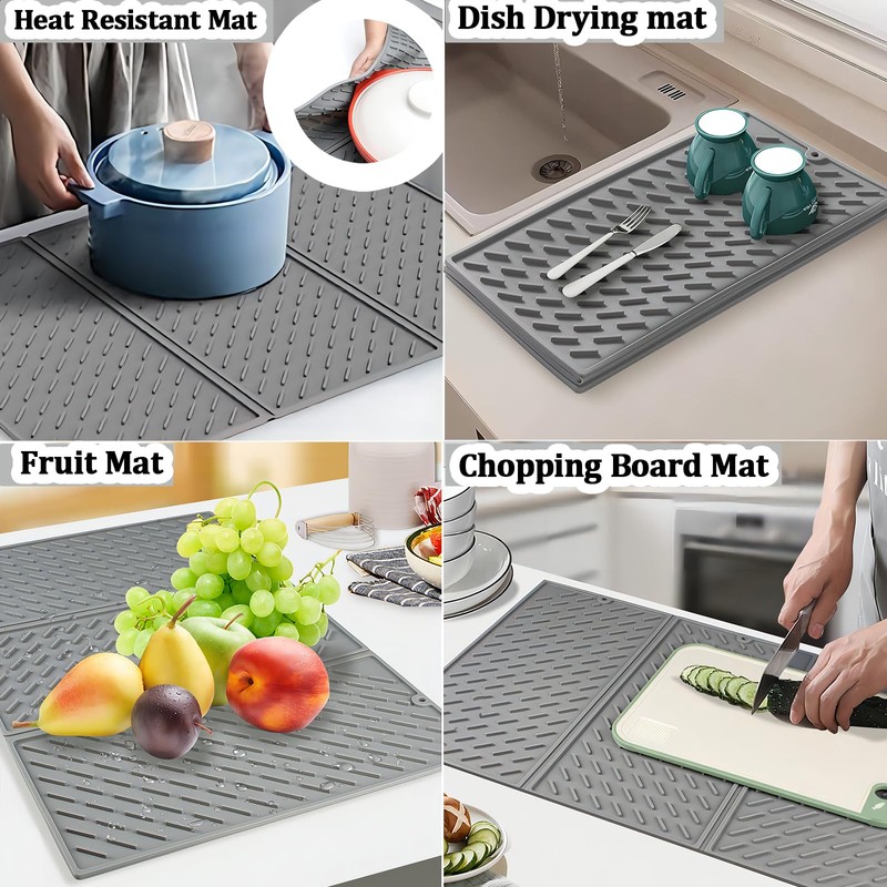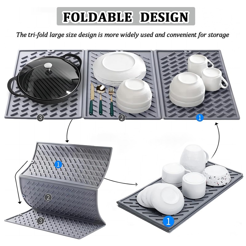 Dish Drying Mat, Silicone Drying Mat for Kitchen Counter, Collapsible Trifold Large Silicone Drying Mat, Dish Pads for Drying Multiple Usage, Easy Clean, Heat-Resistant, BPA Free(24×16in)