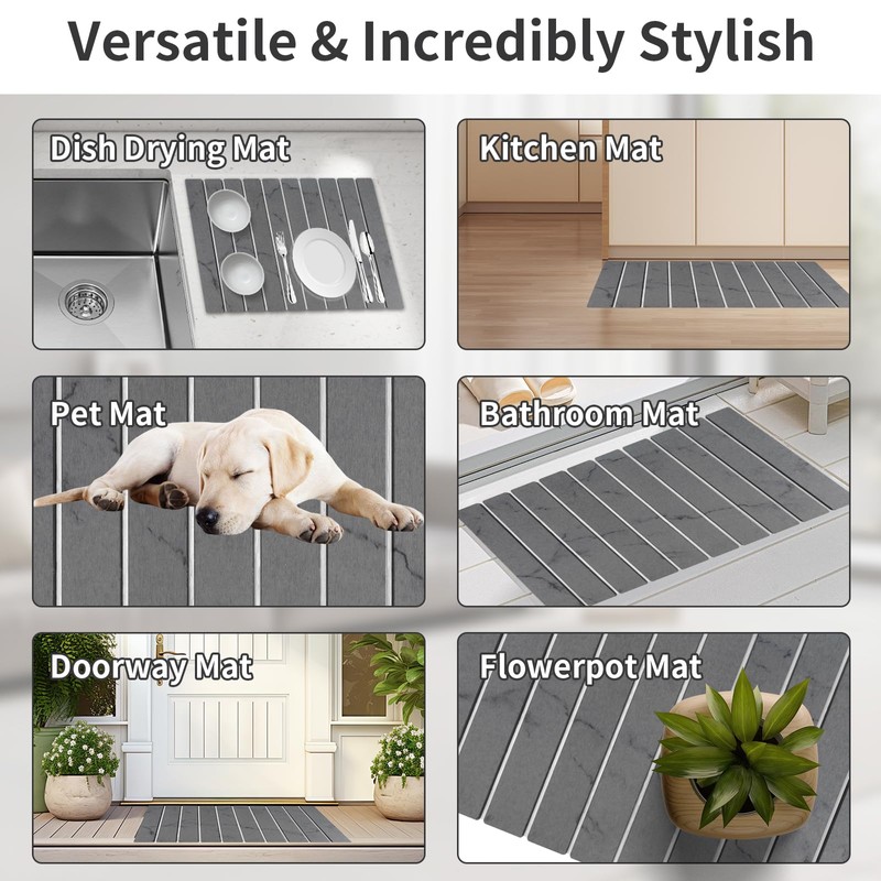- Multipurpose Stone Drying Mat: This quick drying stone mat is not just for dishes – it’s also perfect as a pet feeding mat, bath mat, a plant saucer, or even a heat proof mat