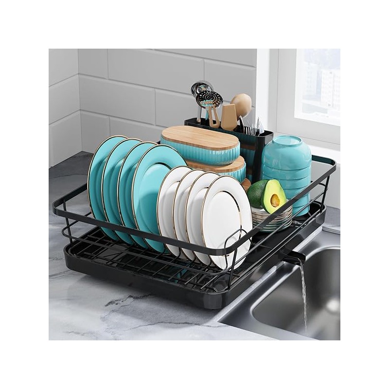 Dish Drying Rack - Stainless Steel Dish Rack with Drainboard for Kitchen Counter and Sink, Large, Black