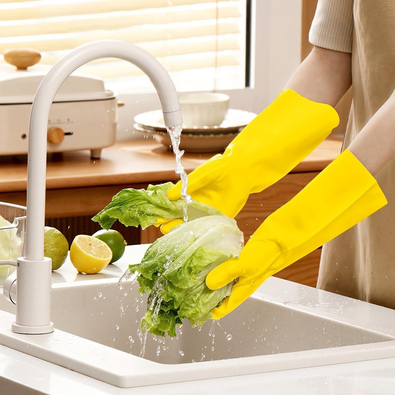 • Waterproof Design: Featuring a waterproof construction, our gloves keep your hands dry and protected from hot water, detergent, and grease. Say goodbye to uncomfortable wetness and hello to a comfortable, irritation-free dishwashing experience.