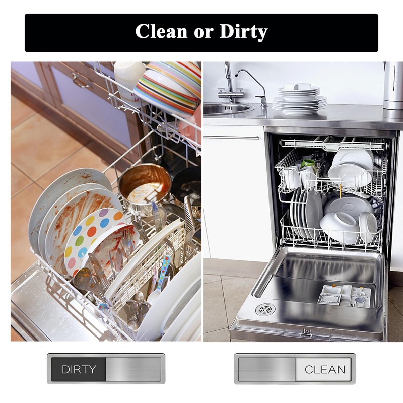- Easy to Use: This dishwasher magnet clean dirty sign has the words "CLEAN & DIRTY" and is easy to operate. Just slide the slider to switch the state. If your dishwasher door is made of stainless steel, just stick the magnet sign directly on the dishwasher; if the dishwasher door is non-magnetic, you can use the included strong double-sided tape.