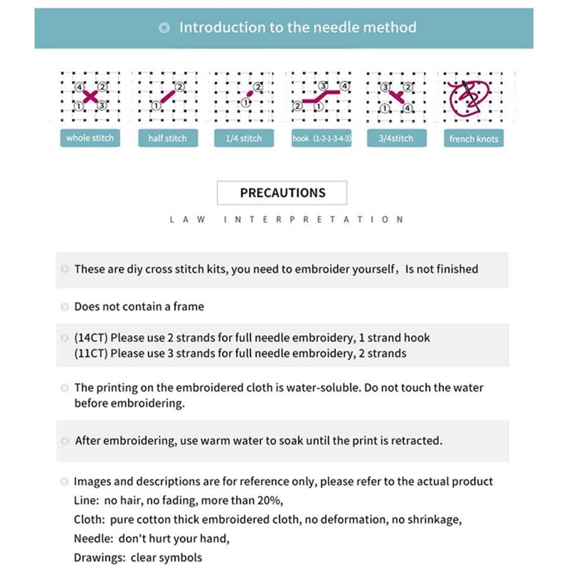 - 【package contains】printed canvas x1,Cotton thread x 1set (30% more than necessary),Needle x2 ,paper blueprint x1set ,English packaging instructionsx1