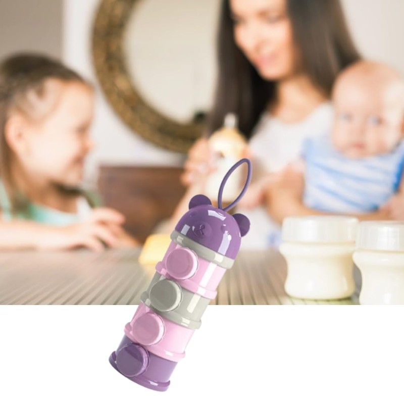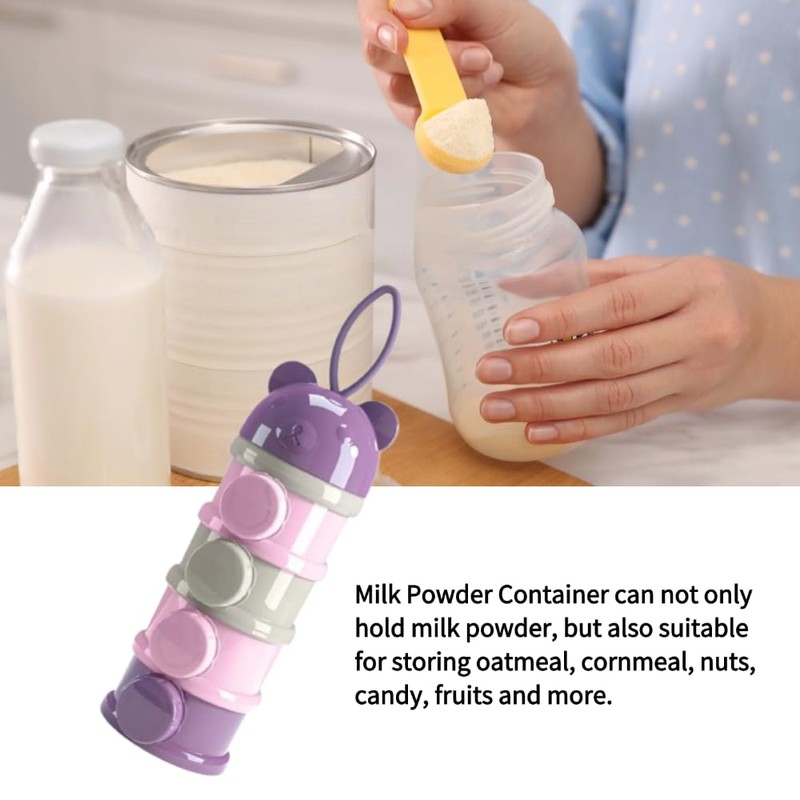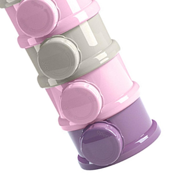 • [Gran capacidad] Cada capa de esta caja de almacenamiento de leche en polvo tiene una capacidad de aproximadamente 60 g, y el diseño de 4 capas proporciona suficiente almacenamiento para un día. El diseño de capas independientes garantiza limpieza e higiene.
