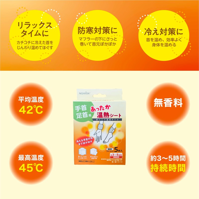 Disposable Cairo Warm Heating Sheet (for wrists and ankles), 5 sheets per pack, quick roll, cold protection, indoor, commuting to work or school, cold protection, winter, Tohoku travel