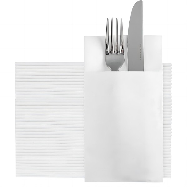 Disposable Dinner Napkins With Built-in Flatware Pocket, Pre folded Party Napkins For Silverware, Linen Feel Napkins Luxury And Elegant For Wedding Party Events, White, Total 50 Count