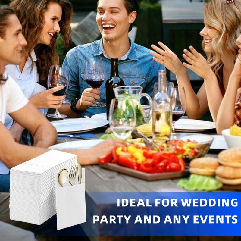 Disposable Dinner Napkins With Built-in Flatware Pocket, Pre folded Party Nap...