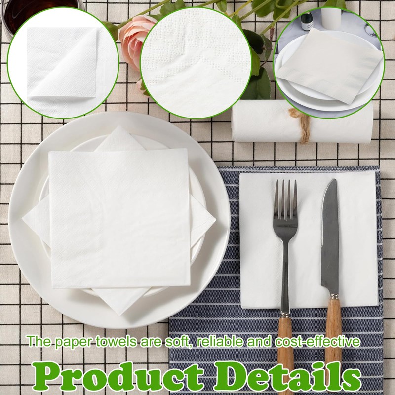 - 5. Durable Quality: These 2-ply napkins are highly absorbent and won’t tear or rip easily during normal use. Offering a high-quality, soft feel, they are ideal for a variety of settings, including hotels, guest accommodations, cafes, and restaurants, ensuring a positive experience for both personal and commercial use.