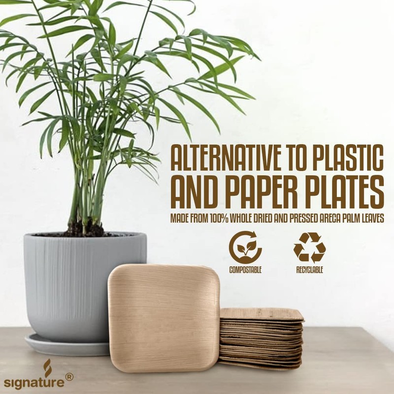- The Greener Alternative to Plastic and Paper Plates - Be a friend of mother nature by using disposables that are completely compostable and recyclable. Signature Palm Plates are truly biodegradable plates and are non-toxic, free from chemicals, and made from 100% whole dried and pressed Areca palm leaves.