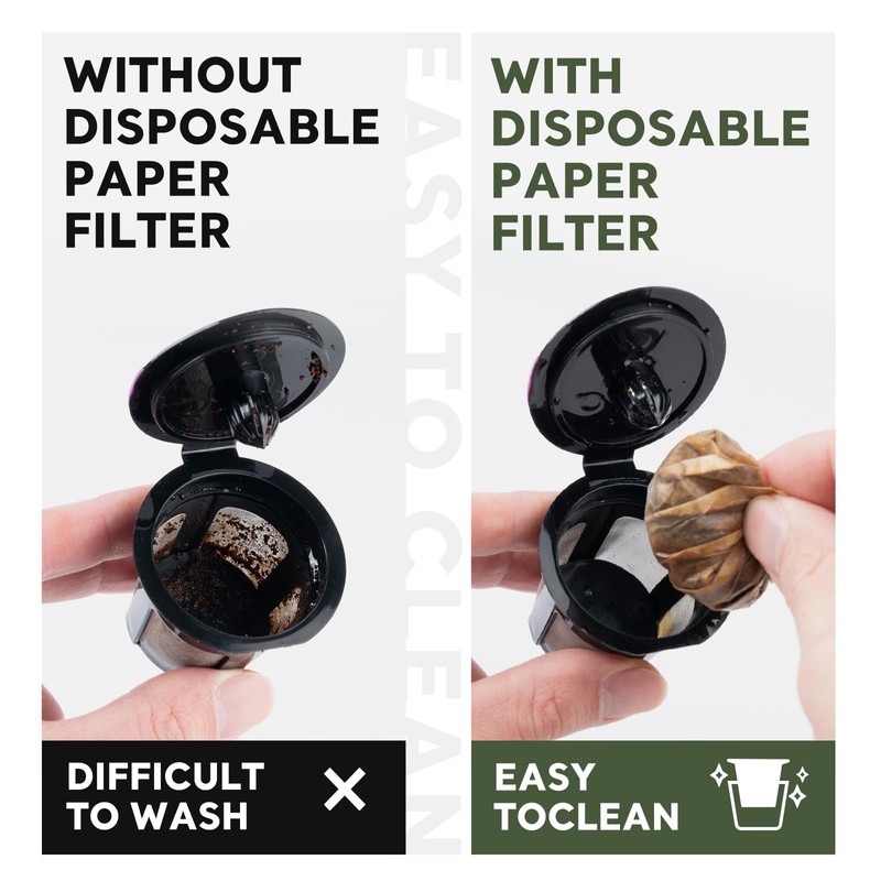 - Disposable K/cup Filters Paper - Easy to Use: K/cup coffee paper filters help you to make a nice cup of coffee and so easily to clean up. It can be taken out directly with the coffee grounds, cleanup is a breeze, saving time. No dripping, no mess and no leaking.