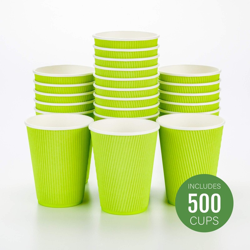 Disposable Paper Hot Cups - 500ct - Hot Beverage Cups, Paper Tea Cup - 12 oz - Eco Green - Ripple Wall, No Need For Sleeves - Insulated - Wholesale - Takeout Coffee Cup - Restaurantware