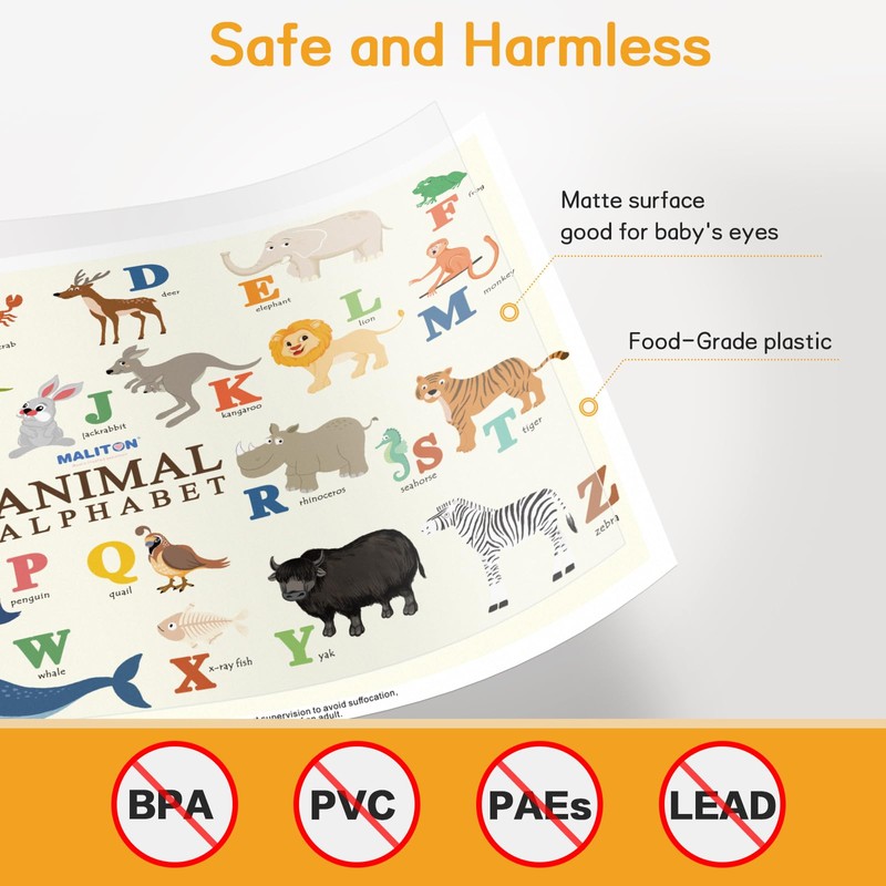 - Safe and Harmless: The surface of Maliton toddler placemat is frosted, which can reduce the reflection of light, good for your baby's eyes. And placemats for kids are made of food-grade plastic (BPA, PVC and lead free), baby can eat directly on the baby food mat
