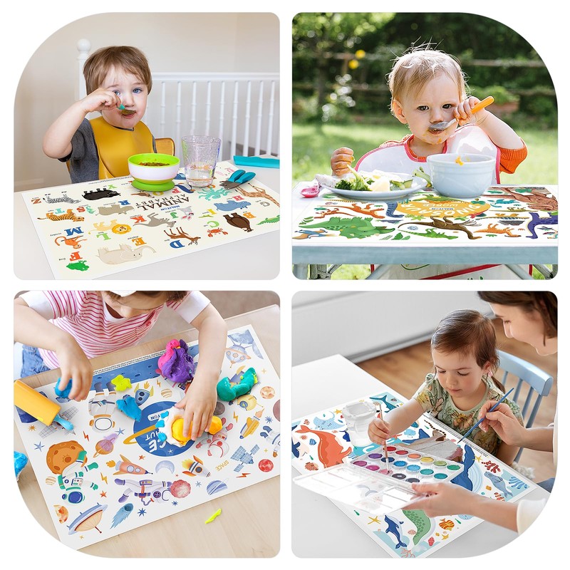- Wide Range of Uses: Baby disposable placemats can be used at home or out. Suitable for baby dining chairs, park picnics, family dinners, restaurant dinners, travel, draw, play with playdoughand and other occasions. You can take them anywhere you want. Kids placemats for dining table are also great and affordable baby essentials or baby shower gifts