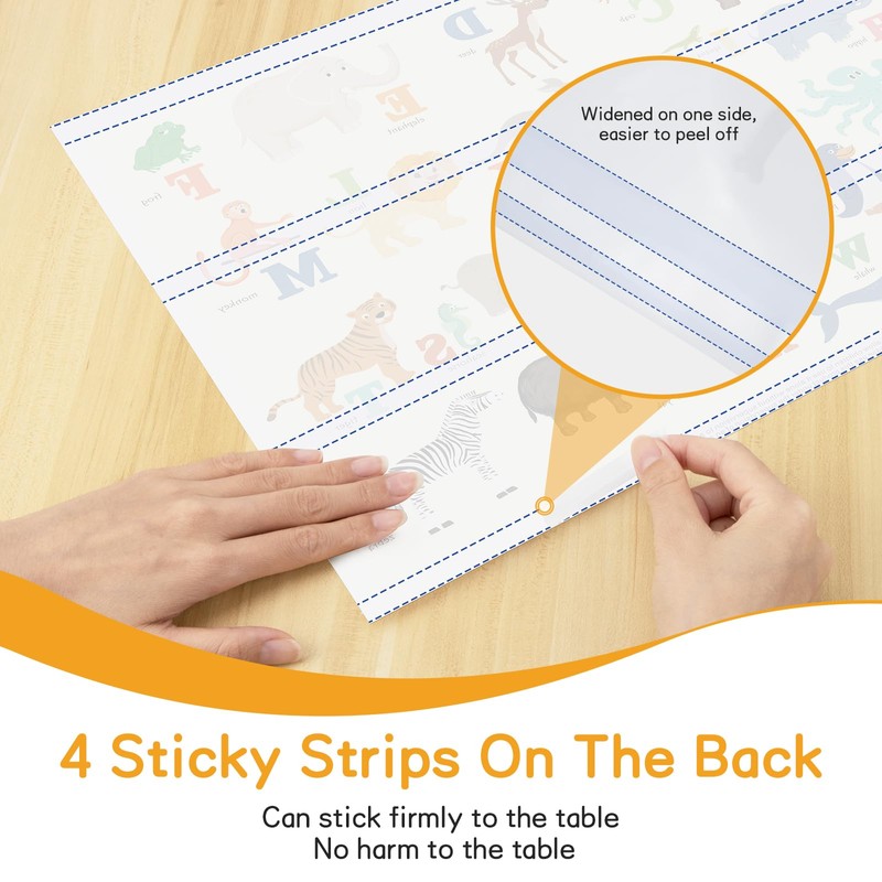 - Easy to Use: 4 adhesive strips on the back can stick firmly to the table, prevent the baby from knocking it off. One side of the protective film is widened, easier to tear. You can easily peel baby placemat off and throw it away after eating, no extra sticky residue or messy cleaning. Our disposable place mats are also waterproof and oilproof, effectively protect your table. Create a clean and hygienic dining or playing environment for baby, and mother clean easier after the meal