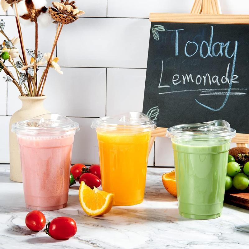 Disposable Plastic Cup with Lid, 50 Set Clear Cup with Direct Drinking Lid, ...