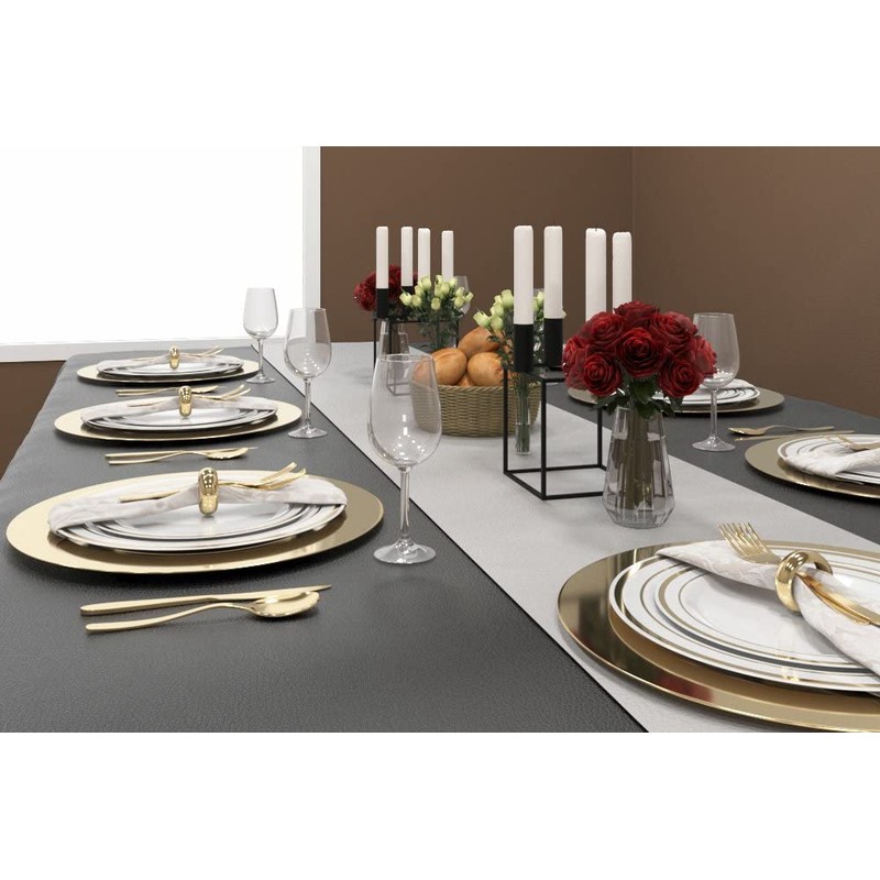 - AYA'S CUTLERY KINGDOM: This set of plates matches other premium disposable tableware products made by Aya's Cutlery Kingdom, such as: gold forks, gold spoons, gold knives, gold designed hand towels, gold rim cups, etc
