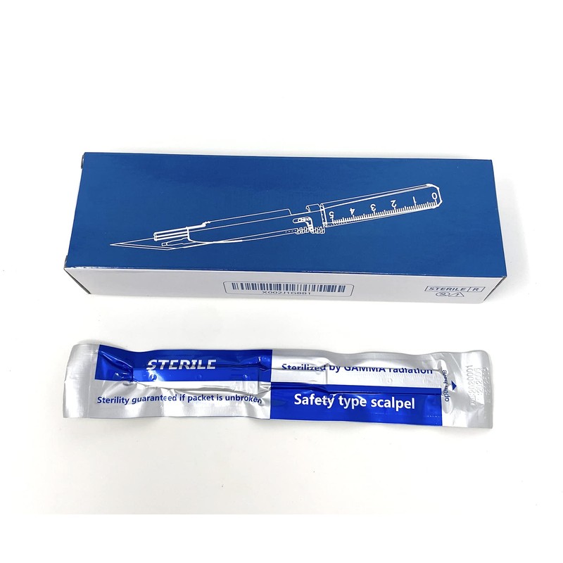 - 100 Disposable Safety Scalpels Sterile Surgical Blade Stainless Steel with Plastic Handle & Metric Line Individually Foil Wrapped Size 10