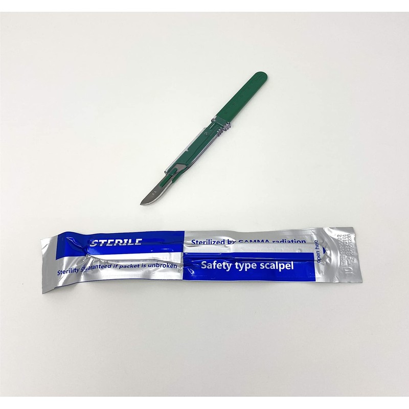 - 50 Disposable Safety Scalpels Sterile Surgical Blade Stainless Steel with Plastic Handle & Metric Line Individually Foil Wrapped Size 10