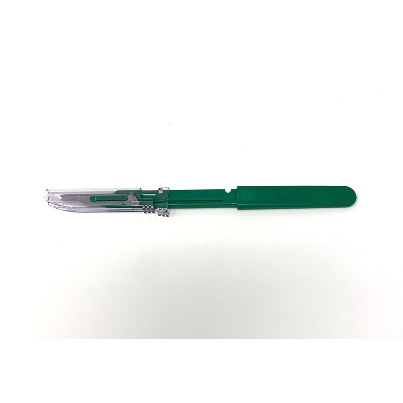 Disposable Safety Scalpels Sterile Surgical Blade Size 15 Stainless Steel with Plastic Handle & Metric Line Individually Foil Wrapped Box of 100