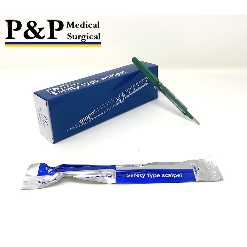 • 100 Disposable Safety Scalpels Sterile Surgical Blade Stainless Steel with Plastic Handle & Metric Line Individually Foil Wrapped Size 15