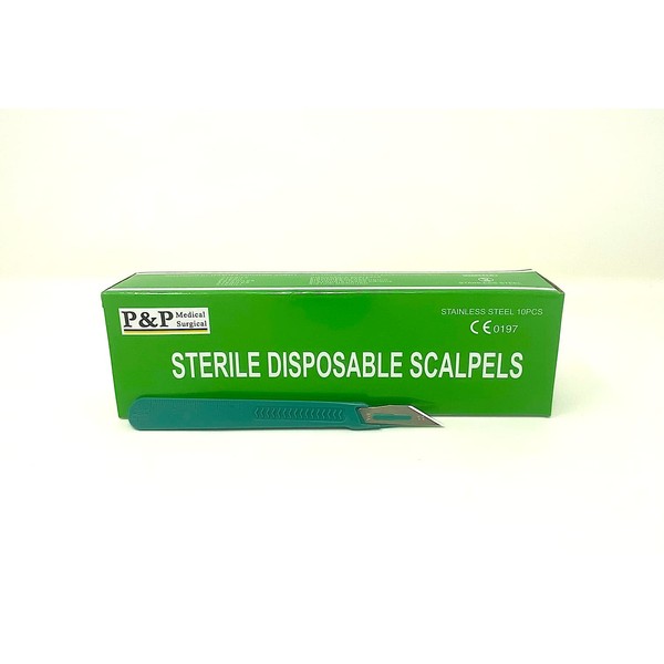 - 250 Disposable Scalpels Sterile Surgical Blade Stainless Steel with Plastic Handle & Metric Line Individually Foil Wrapped Size 10A