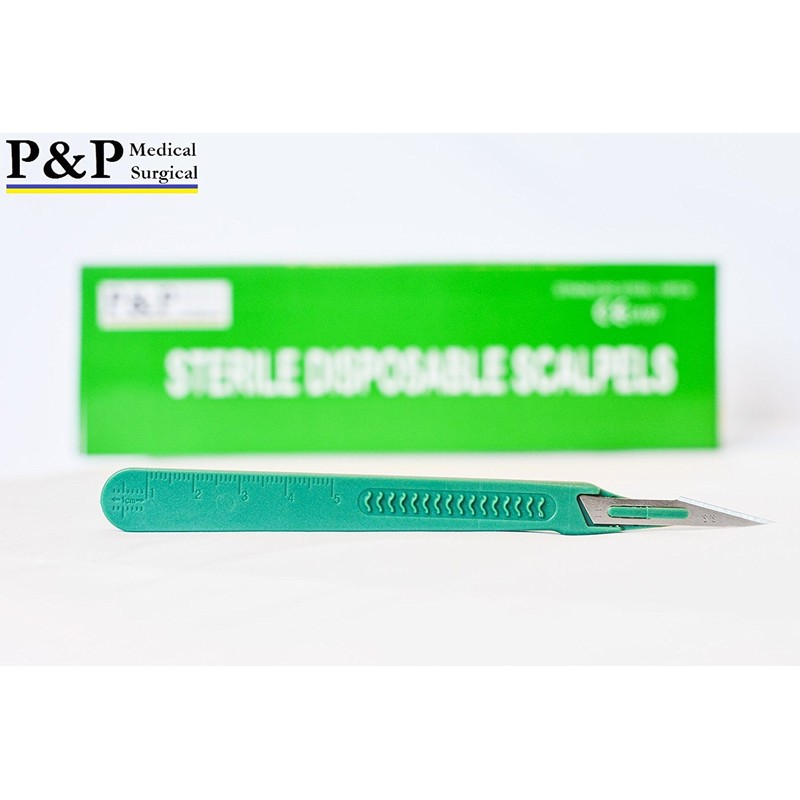 Disposable Scalpels Sterile Surgical Blade Size 22 Stainless Steel with Plastic Handle & Metric Line Individually Foil Wrapped by P&P Medical Surgical Box of 10 (3)