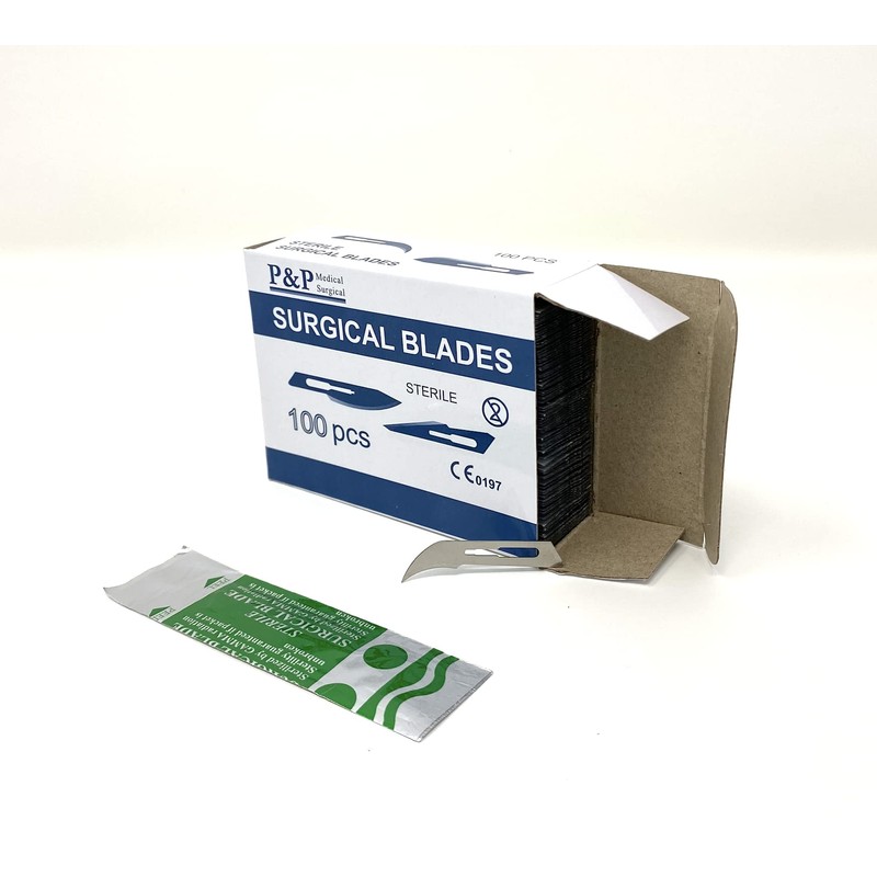 Disposable Surgical Scalpel Blades Sterile Sizes 10 10A 11 12 14 15 16 18 21 22 36 High Grade Carbon Steel 2.1% 10xx Individually Foil Wrapped by P&P Medical Surgical Box of 100 (12)