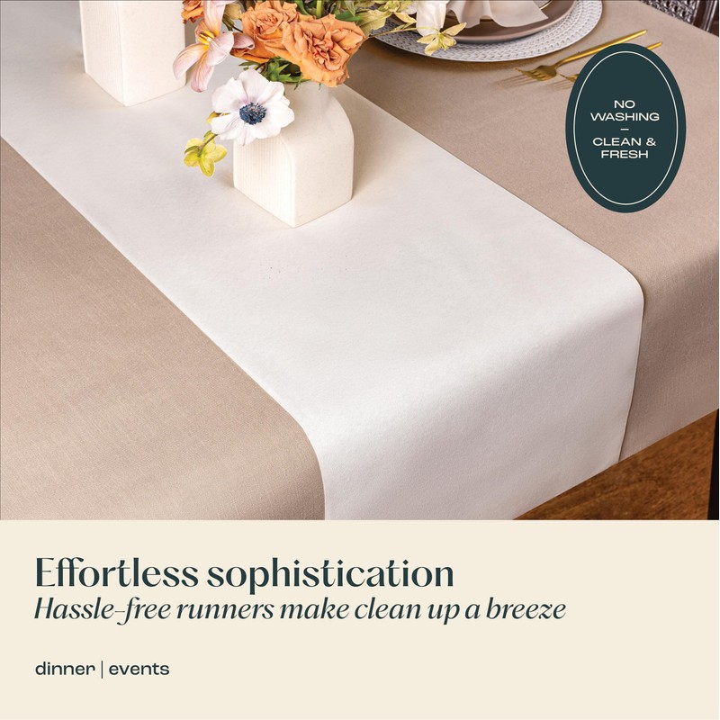 - UPGRADE YOUR TABLE DECOR: Impress your guests and make your next event unforgettable with our exclusive table runner. Crafted from premium paper that resembles the look and feel of linen and cotton, it promises a luxurious dining experience that'll be remembered.