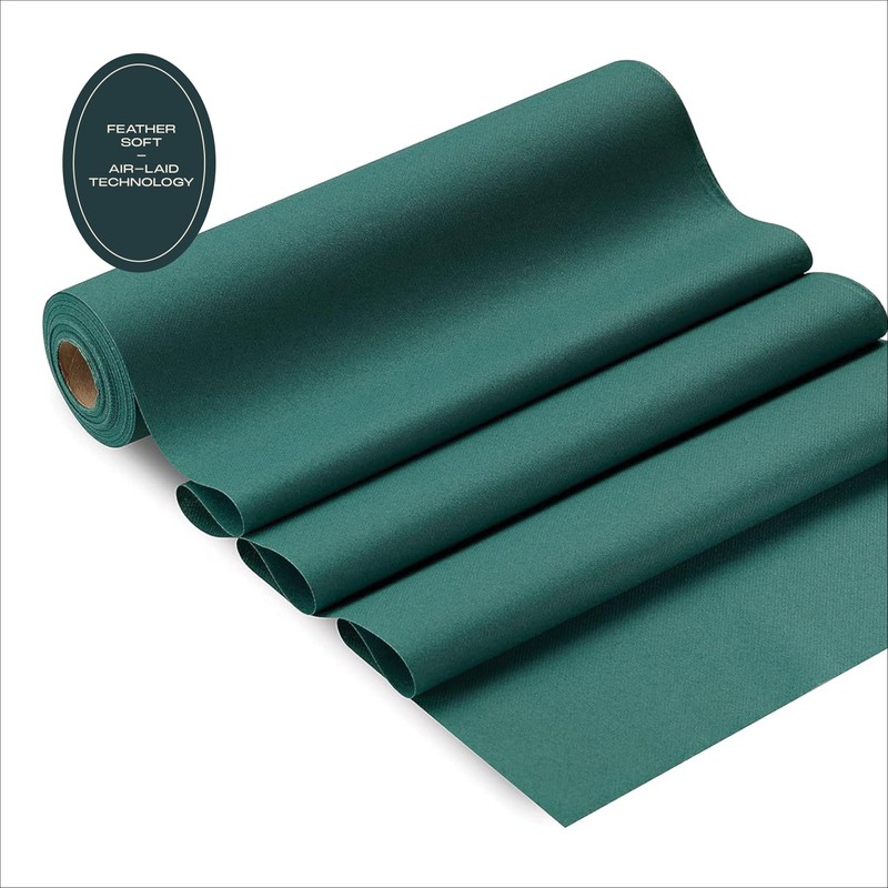 Disposable Table Runner for Dining Table, 16" x 48" 20-Pack Linen-Like Green Paper Table Runners for Party, Wedding Or Event