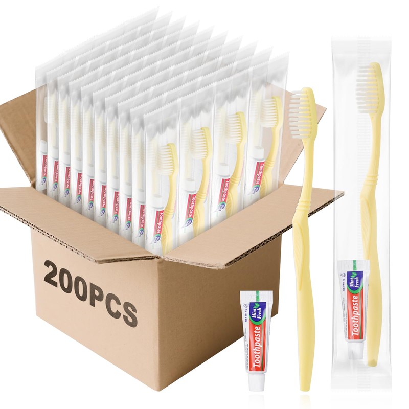 • Package Contents: You will receive 200 sets of toothbrush with toothpaste kits (each pack contains 0.17oz of toothpaste). Each toothbrush is individually wrapped for easy organization and portability. Color: Yellow