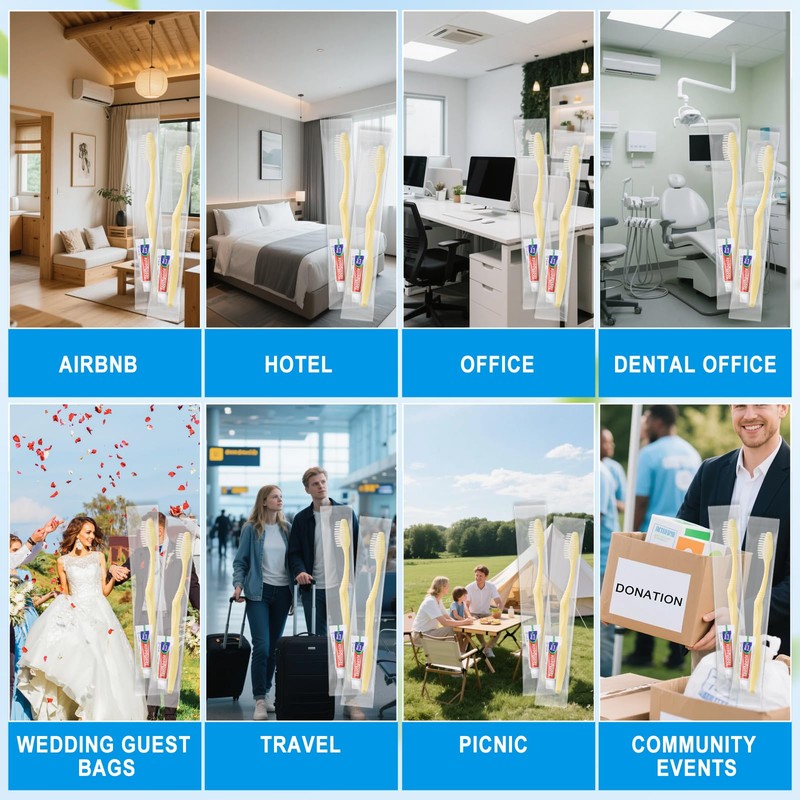 • Independent Packaging: The individual packaging design is lightweight and portable, allowing you to store them separately in multiple places. It also ensures hygiene, providing you with a safe and clean oral care experience—ideal for households, hotels, bed & breakfasts, and more.