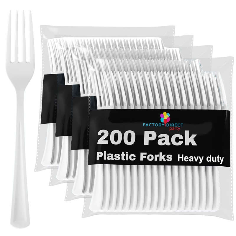 - 【 Includes 】 200 pack of heavy-duty 7.5 inch White plastic Forks. These durable Forks are strong yet disposable cutlery making them the perfect plastic silverware option for any party or occasion. Offering multiple different color options, they are sure to match your decor.