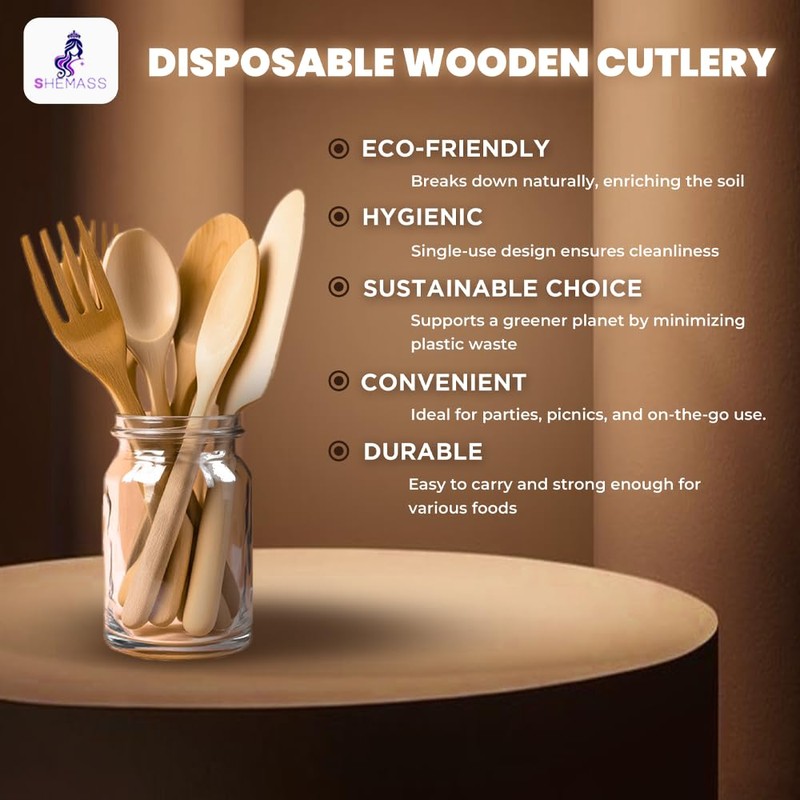 - Disposable: shemass wooden cutlery is disposable, biodegradable, compostable, renewable and sustainable, which could go in the compost bin, with your table scraps.