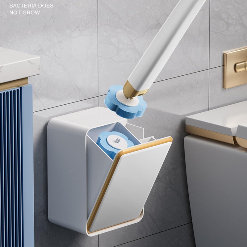 Disposables Toilet Brush with Liquid Wall-Mounted Tool for Bathroom Replacement Brush Head Access