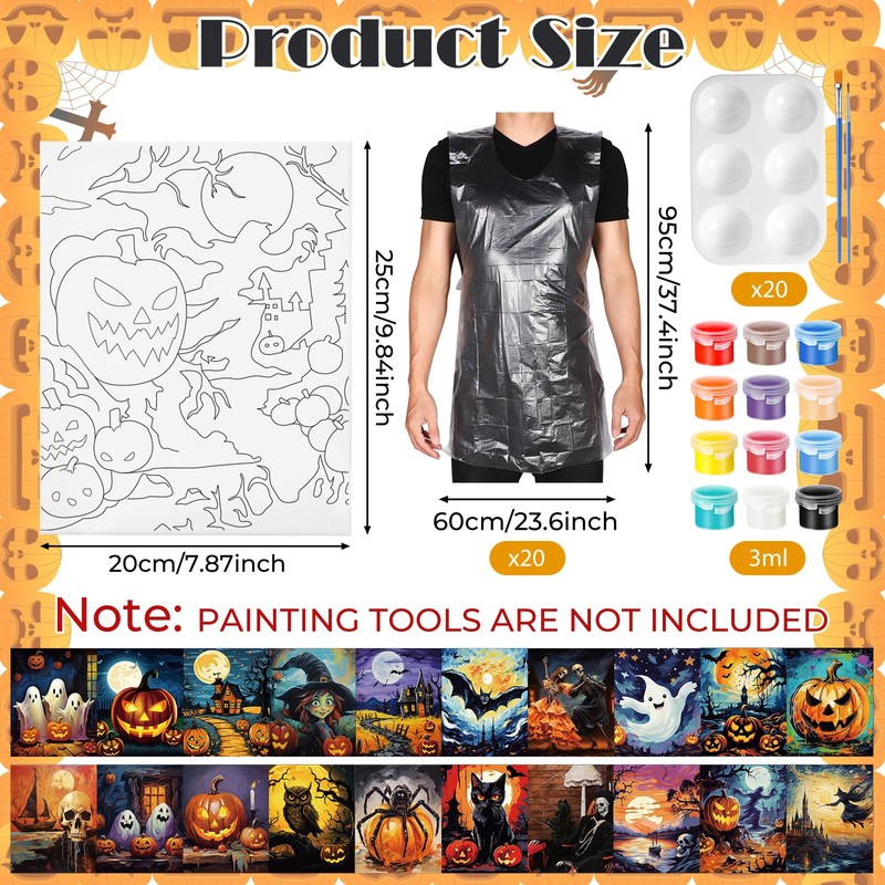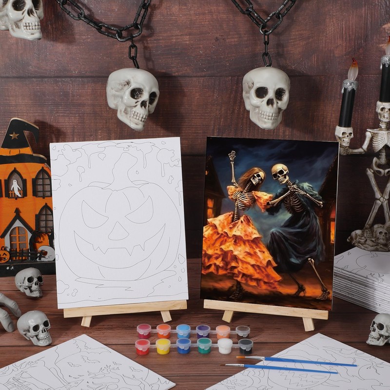 • Different Styles: our pre drawn canvas offer a variety of 20 different Halloween themed styles to choose from; This design can make sure there's a style that fits your taste and preference; Whether you're a beginner, a paint and sip going enthusiast, or an expert painter, our canvas painting will help you craft stunning artworks effortlessly; Get ready to dive into the world of colors and creativity with our paint party kits