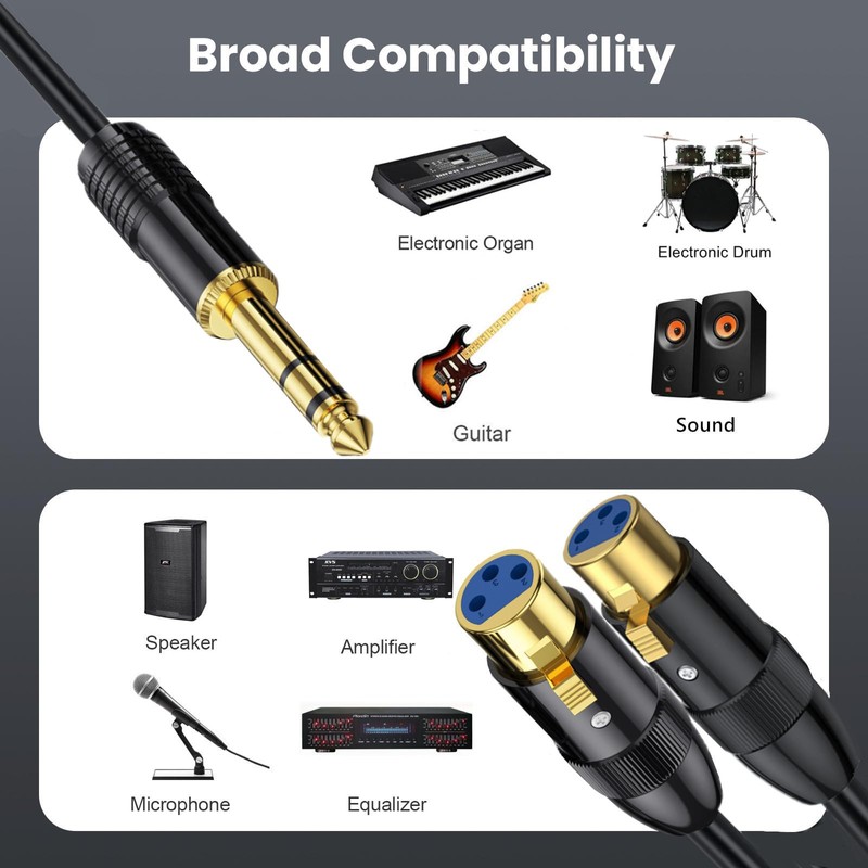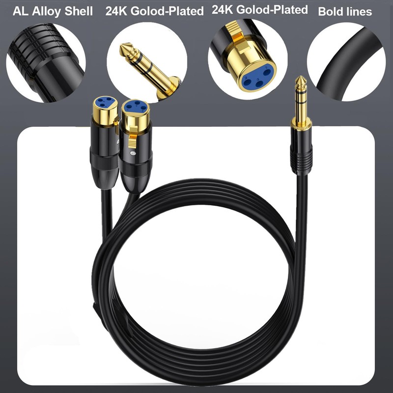 • Connectors: Dual XLR female to 6.35mm TRS male mono plug audio cable.