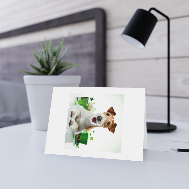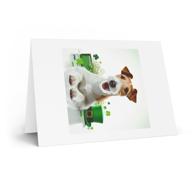 DistinctInk Greeting Card/Note Card - Smooth Fox Terrier St. Patrick's Day - PACK of 25
