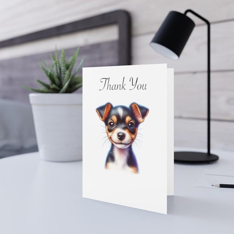 DistinctInk Greeting Card/Note Card -Toy Fox Terrier Puppy Colored Pencil Drawing Birthday - PACK of 25