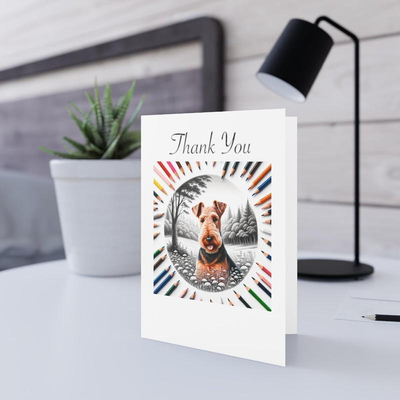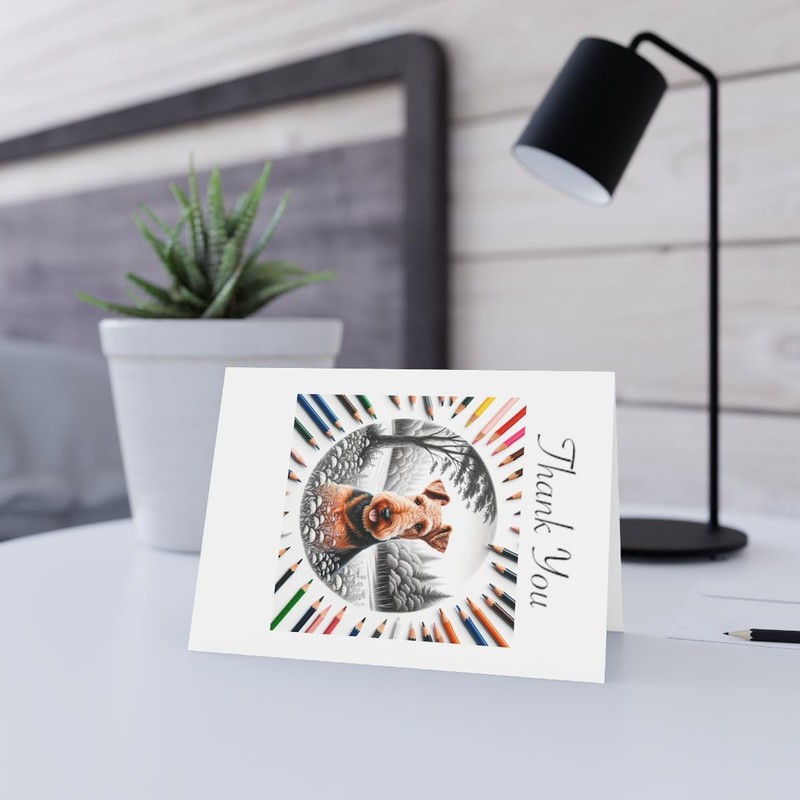 DistinctInk Greeting Card/Note Card -Welsh Terrier Colored Pencil Drawing Birthday - PACK of 25
