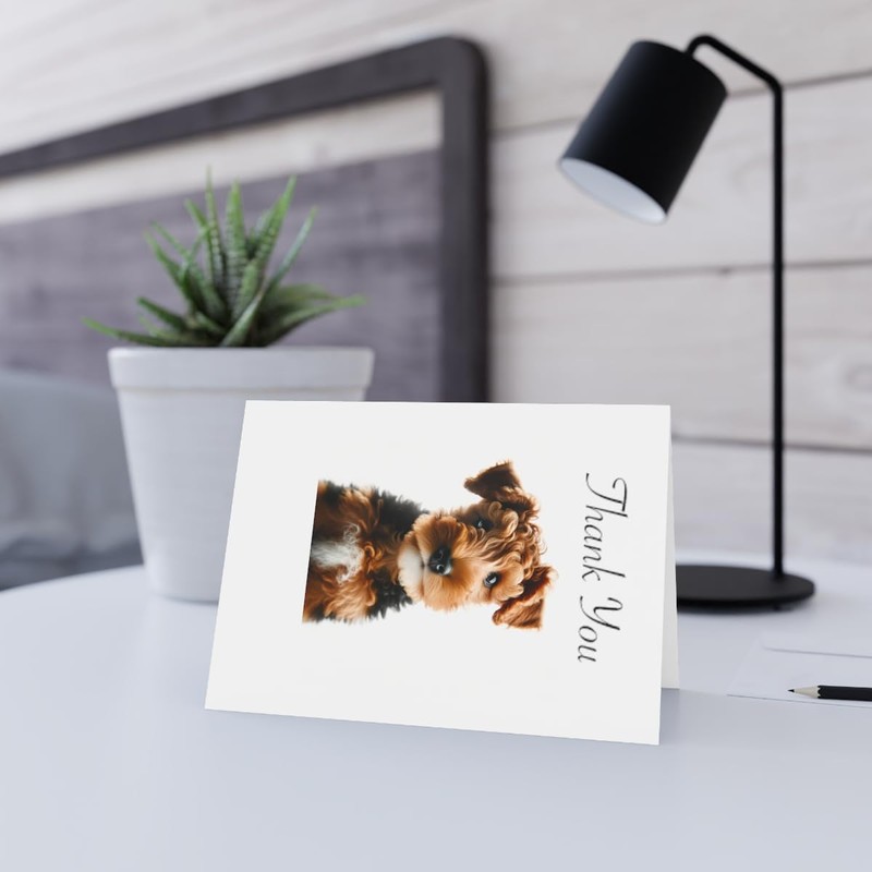 - WELSH TERRIER PUPPY PHOTOGRAPH - 25-pack 4x6 inch greeting card featuring our Home for the Holidays design on the front. Perfect for conveying warm wishes during the holiday season!