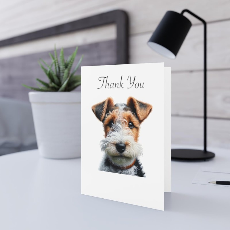 DistinctInk Greeting Card/Note Card -Wire Fox Terrier Puppy Colored Pencil Drawing Birthday - PACK of 25