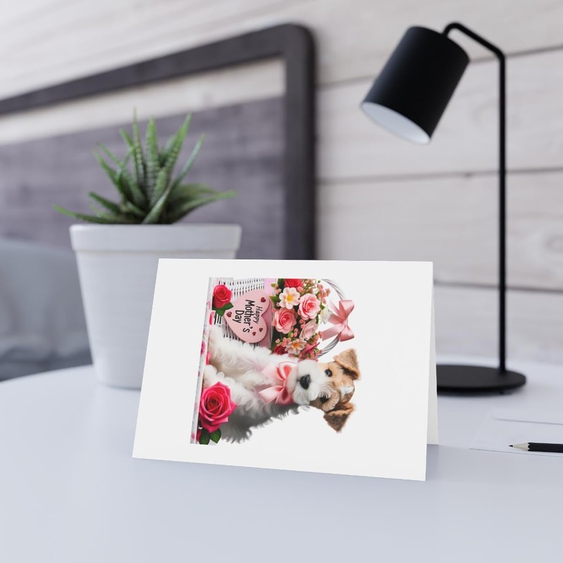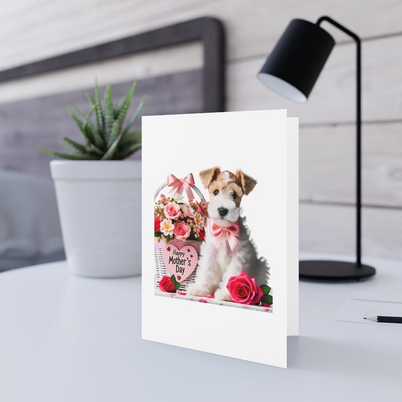 DistinctInk Greeting Card/Note Card - Wire Fox Terrier Puppy Mother's Day - PACK of 25