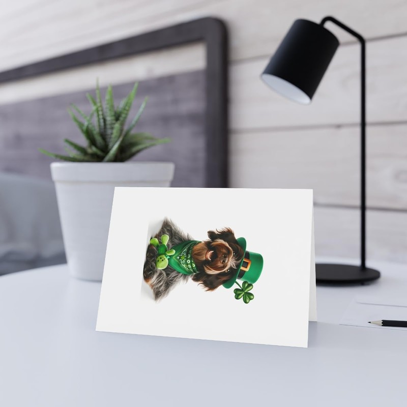 DistinctInk Greeting Card/Note Card - Wirehaired Pointing Griffon St. Patrick's Day - PACK of 25