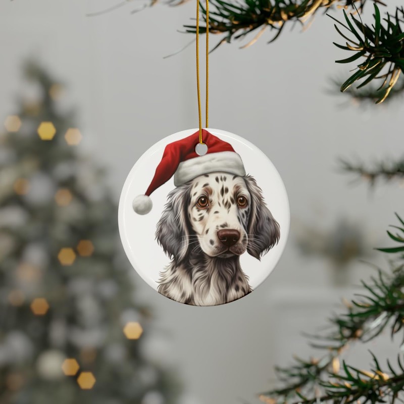 - ENGLISH SETTER PUPPY DRAWING - Custom Printed Ceramic Christmas Tree Ornament / Hanging Decoration with English Setter Puppy Drawing Design printed directly on the the ornament