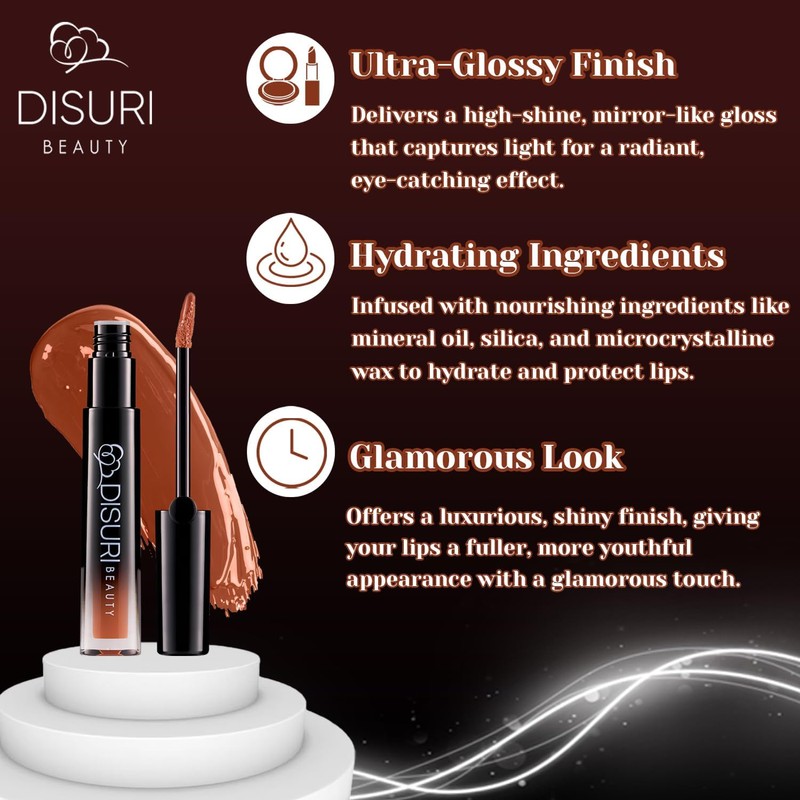 DISURI Beauty Glossy Blast Lip Gloss for Girls and Women - Non-Sticky and Long-Lasting Formula - Get Ultra Shine with Flavored Lip Gloss - 0.8 FL Oz - (Peanut Butter Kisses - M49)