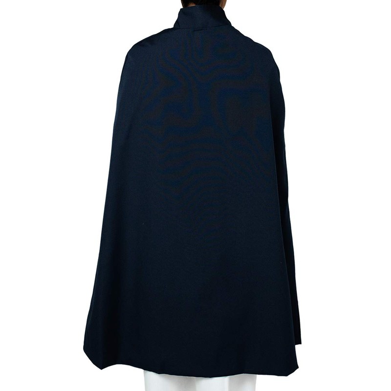 La capa de graduación de enfermería de Ditmo Uniformes es de color azul marino y viene con un forro de poliseda rojo. Cuenta con un broche de cinta con botones al frente, y es de cuello sport.