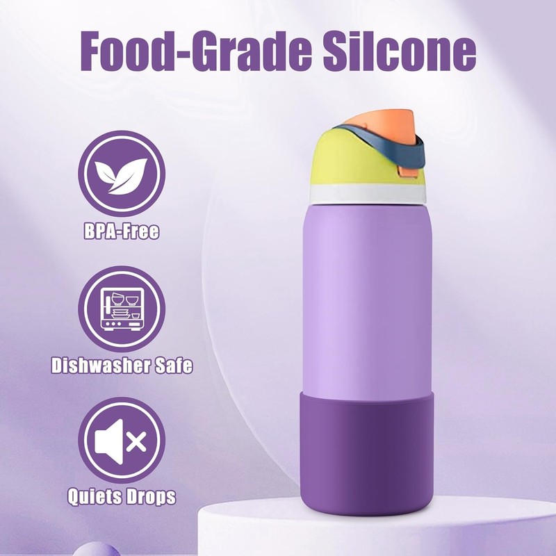 Diumepo Silicone Water Bottle Boot for Owala 40 oz, Anti-Slip Protective Sleeve for Owala Twist & FreeSip & Flip Stainless Steel Water Bottle, Boot Bottom Base for Owala (Purple)