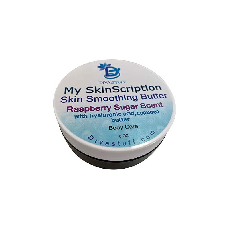 Diva Stuff My Skinscription Skin Smoothing Body Butter, Raspberry Sugar Scent, With Hyaluronic Acid, Cupuacu Butter and Shea, For Tired, Stressed, Saggy Skin (Raspberry Sugar)