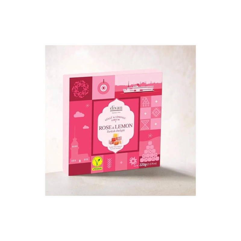 Divan Rose & Lemon Turkish Delight - 220 gr. | Traditional Turkish Delight with Rose and Lemon Flavors | Gift for Holidays (220 Gr, Rose & Lemon)